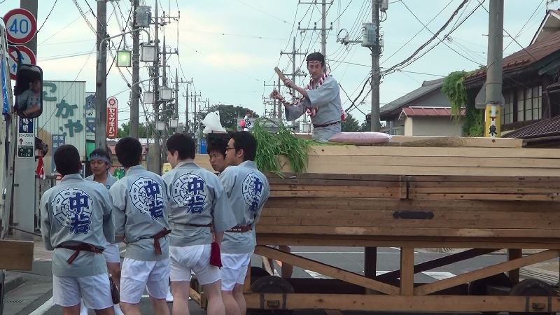 山と舞台の準備がいよいよ開始。 脚入れ 地車も、準備開始。この地車が歌舞伎の舞台に変身します。 地車と屋台を接続します。 揃いの浴衣から、半纏へ衣替えの若衆。 舞台の形が見えてきました。