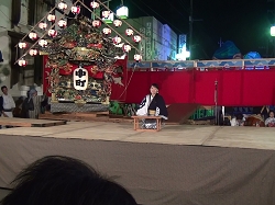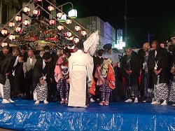 その後45度角度を変えるため、屋台を回します。 お囃子も、屋台の保管庫を出てから音を切らさず演目が始まる直前まで奏でられます。 舞台の準備も着々とすすんでます。 そろそろ、皆さん集まりだしてきました。